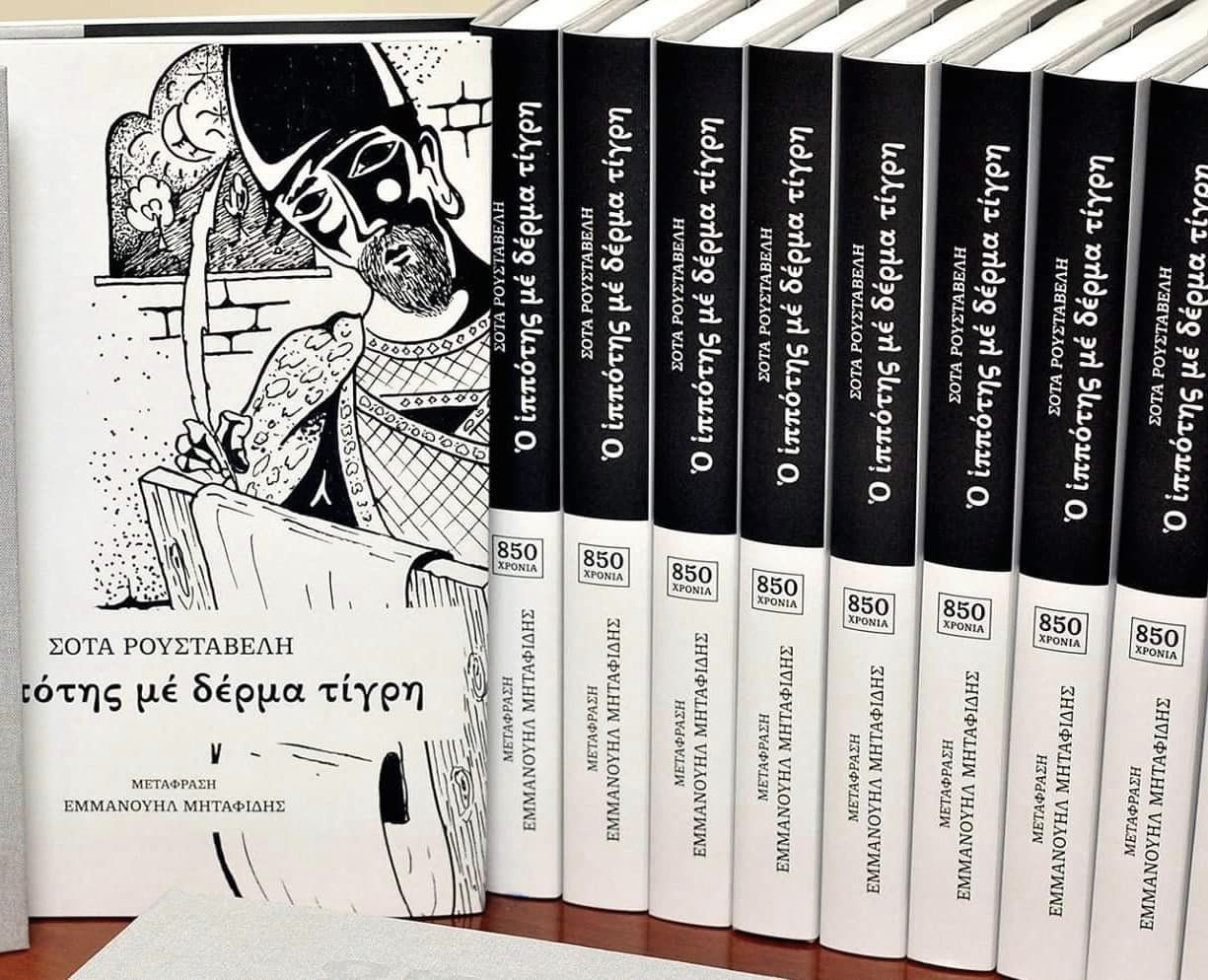 რუსთაველის ბერძნული თარგმანი ეკუთვნის ემანუილ მიტაფიდისს, ხოლო წიგნი მისი შვილიშვილის, გრიგორი კირიაკოსის ძალისხმევით გამოიცა 2016 წელს - შოთა რუსთაველის 850-ე საიუბილეო თარიღის აღსანიშნავად.