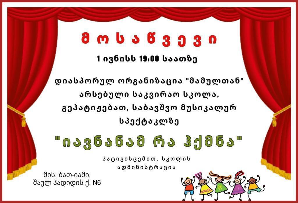 სპექტაკლი 1 ივნისს 18:00 საათზე დაიწყება