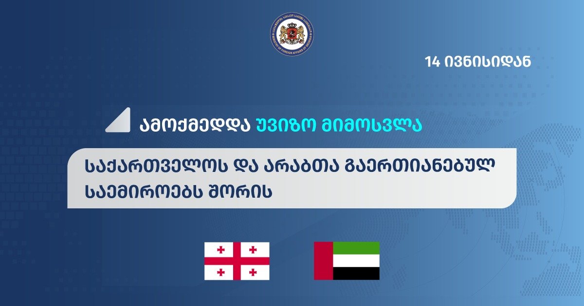 14 ივნისიდან ძალაში შევიდა საქართველოსა და არაბთა გაერთიანებულ საემიროებს შორის უვიზო მიმოსვლის რ...
