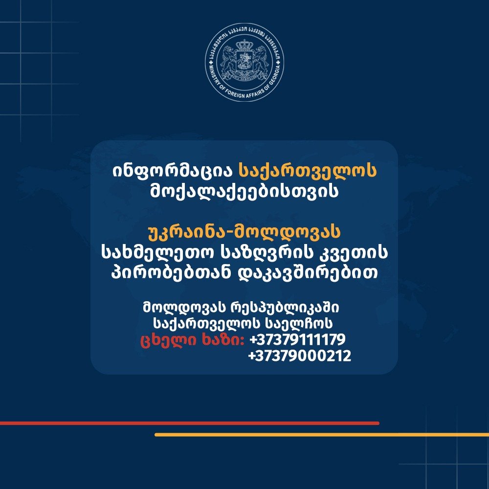 საქართველოს საელჩო მოლდოვას რესპუბლიკაში საგანგებო რეჟიმში მუშაობს