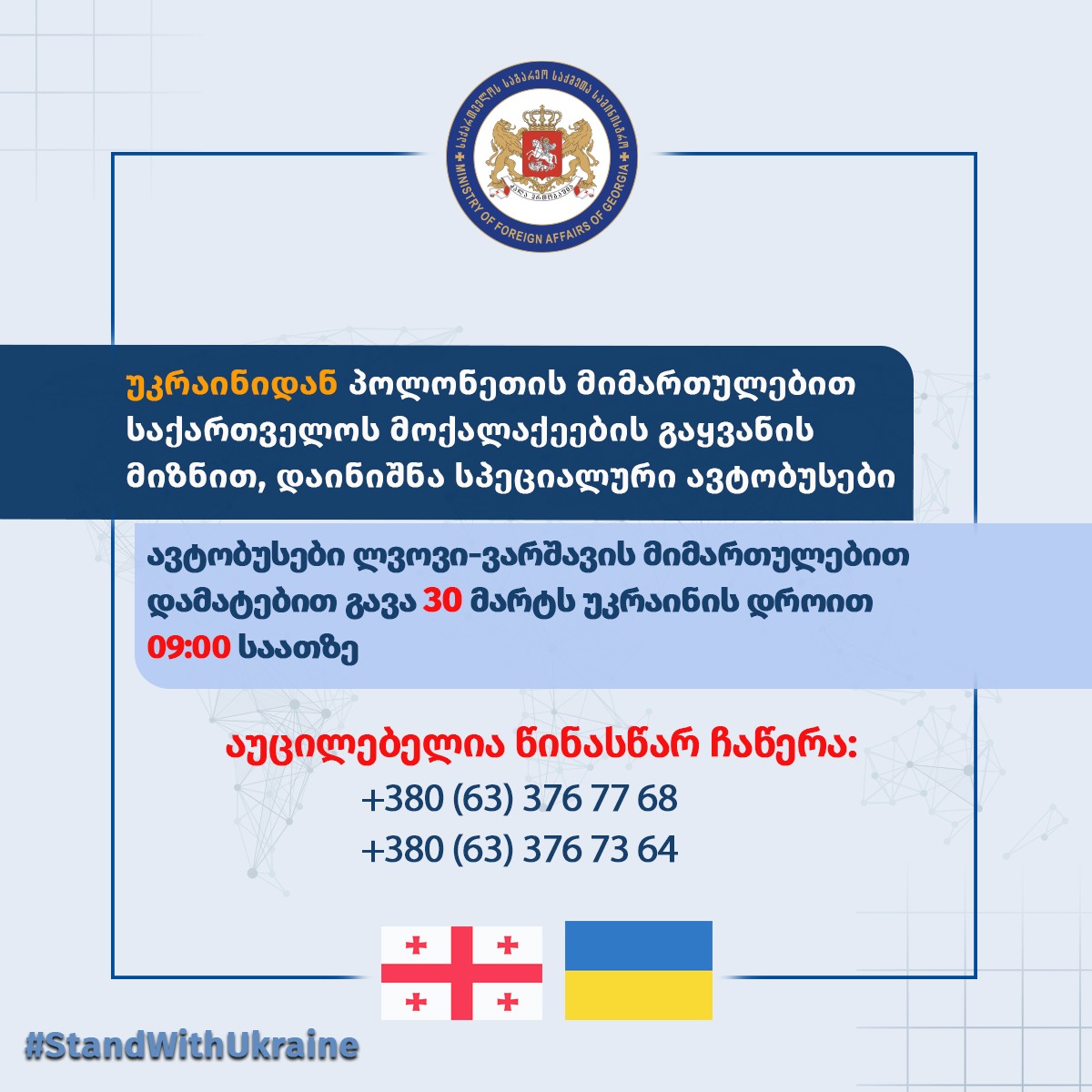 ბოლო 24 საათის განმავლობაში ლვოვიდან და ოდესადან საქართველოს 60 მოქალაქის gადაყვანა მოხდა მოსაზღვ...