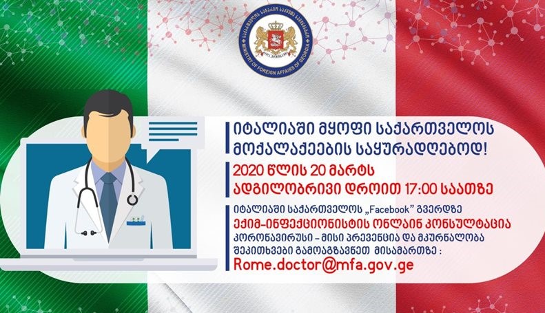 კონსულტაცია გაიმართება 20 მარტს, იტალიის დროით 17:00 სთ-ზე იტალიაში საქართველოს საელჩოს Facebook...