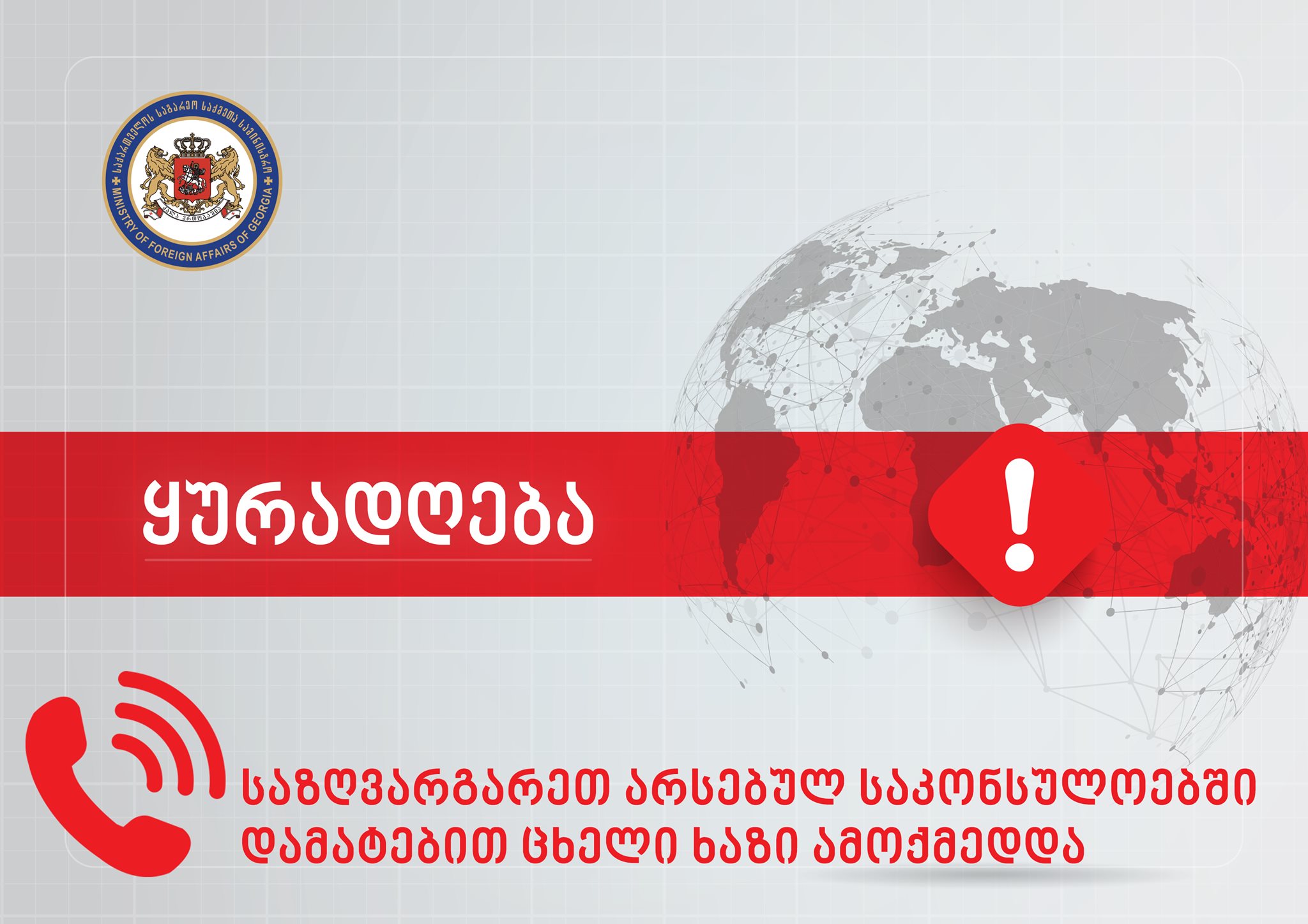 საზღვარგარეთ საქართველოს საელჩოებში მოქმედებს 24 საათიანი ცხელი ხაზი და