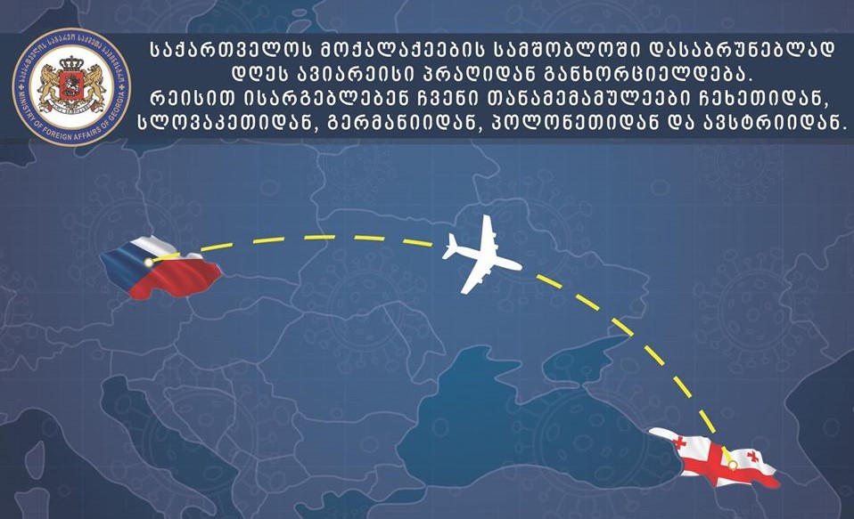საქართველოს ხელისუფლება განაგრძობს უცხოეთში მყოფი მოქალაქეების სამშობლოში ეტაპობრივად და ორგანიზებულად დაბრუნების პროცესს. უწყებათაშორისი საკოორდინაციო საბჭოს მიერ განსაზღვრული ავიარეისების ფარგლებში, დღეს, 2 მაისს, შესრულდება ჩარტერული რეისი პრაღიდან ბათუმის მიმართულებით, რომელიც სამშობლოში დააბრუნებს ჩვენს თანამემამულეებს ევროპის სხვადასხვა ქვეყნიდან: ჩეხეთიდან, სლოვაკეთიდან, გერმანიიდან, პოლონეთიდან და ავსტრიიდან.