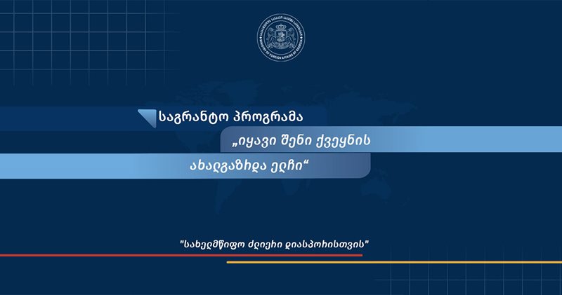 საქართველოს საგარეო საქმეთა სამინისტრო, მიგრაციის პოლიტიკის განვითარების საერთაშორისო ცენტრის მხარდაჭერით, აცხადებს კონკურსს „იყავი შენი ქვეყნის ახალგაზრდა ელჩი“.