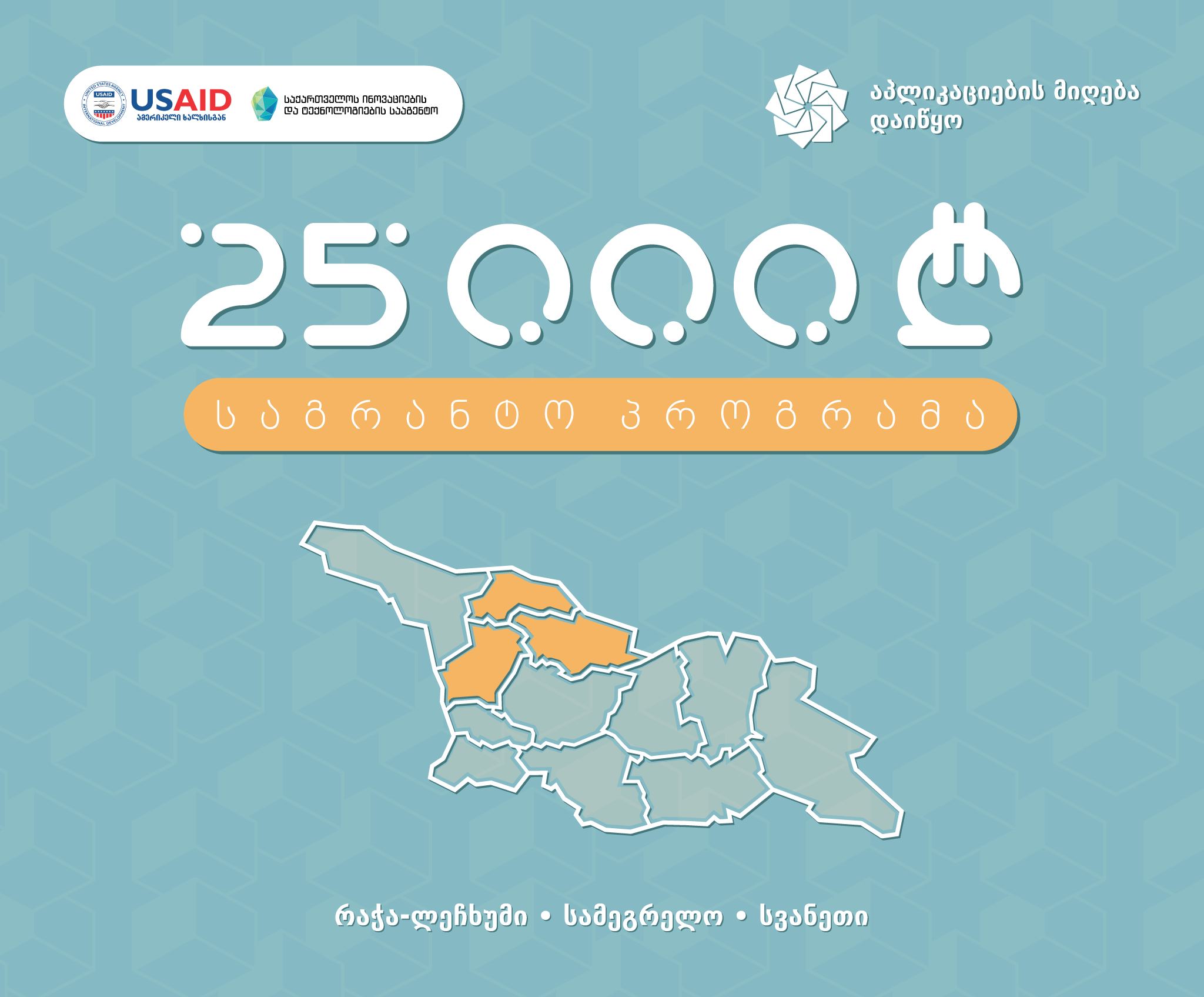 საგრანტო თანხის მოცულობა არ უნდა აღემატებოდეს 25 000 ლარს.
