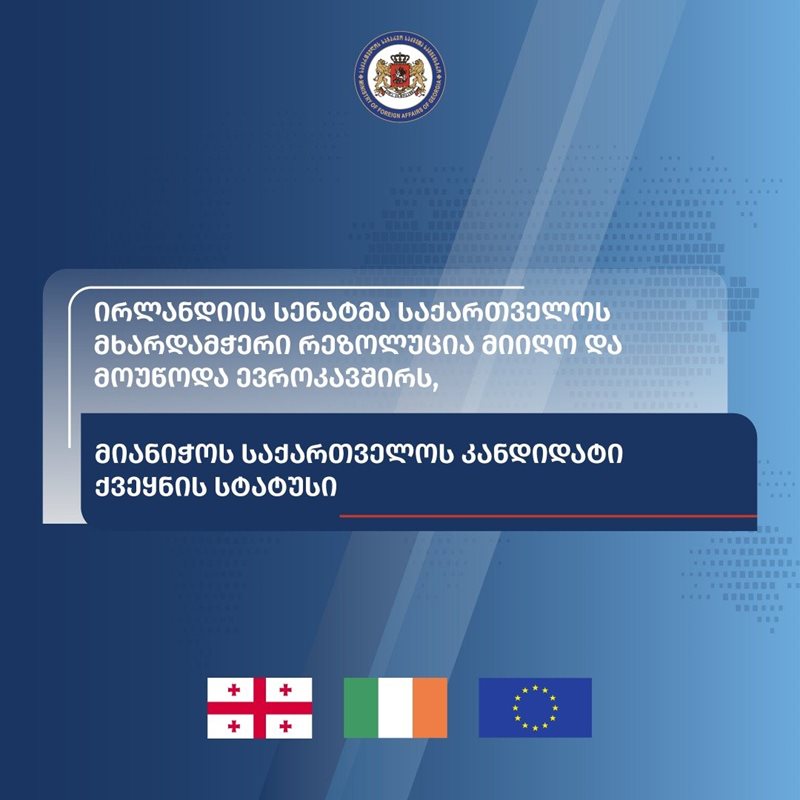 2022 წლის 14 ივნისს, ირლანდიის სენატმა მიიღო საქართველოს მხარდამჭერი რეზოლუცია, რომლითაც იგი მოუწოდებს ევროკავშირს, მიანიჭოს საქართველოს ევროკავშირის კანდიდატი ქვეყნის სტატუსი.