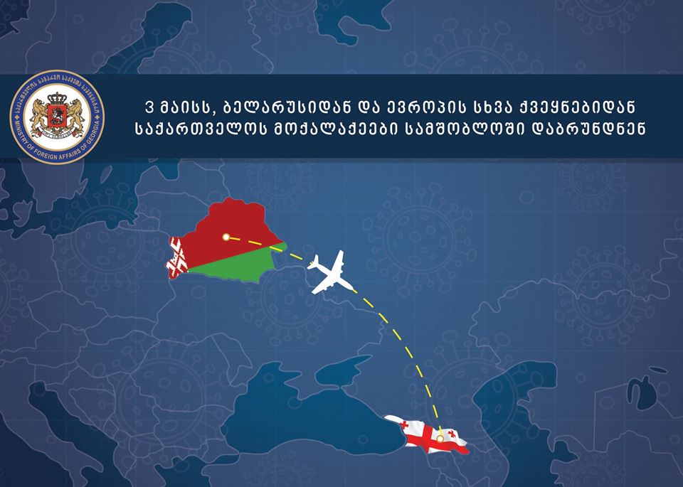 საქართველოს მოქალაქეების სამშობლოში დაბრუნების მიზნით, ავიაკომპანია „ბელავია“ მინსკი-თბილისის მიმართულებით კიდევ 2 რეისს შეასრულებს - 10 და 17 მაისს.