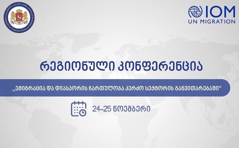 მიმდინარე წლის 24-25 ნოემბერს, ონლაინ ფორმატით ჩატარდება კერძო სექტორის განვითარებაში დიასპორის ჩართულობის შესახებ პირველი რეგიონული კონფერენცია. ღონისძიების ორგანიზატორები არიან საქართველოს საგარო საქმეთა სამინისტრო, როგორც მიგრაციის საკითხთა სამთავრობო კომისიის წევრი უწყება და მიგრაციის საერთაშორისო ორგანიზაცია (IOM) - საქართველოს მისია. რეგიონული კონფერენცია ჩატარდება ნორვეგიის საგარეო საქმეთა სამინისტროს მიერ დაფინანსებული პროექტის ფარგლებში.