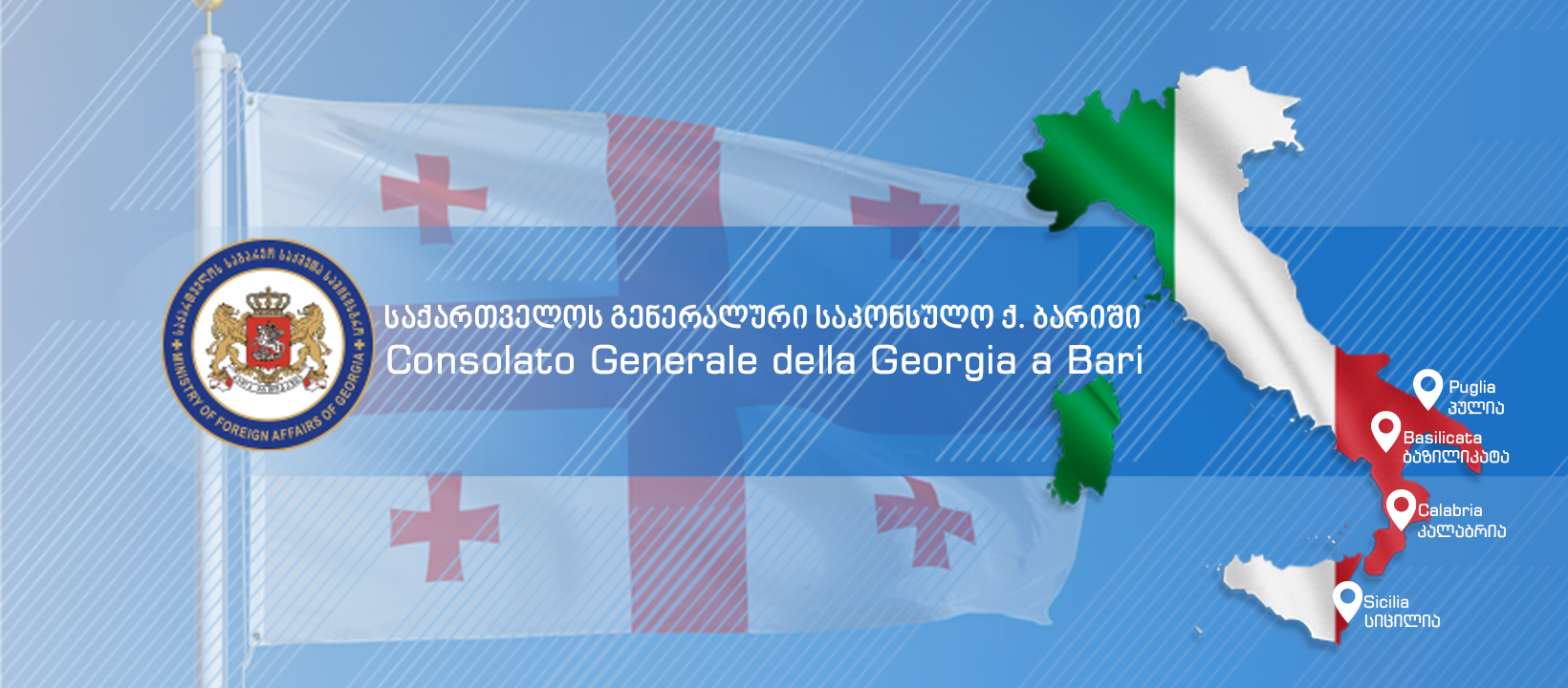 2022 წლის 19 მაისს (ხუთშაბათს) ქ. ბარიში საქართველოს გენერალური საკონსულოს წარმომადგენლები გეგმავენ, ერთი დღით ეწვიონ ქ. რეჯო კალაბრიას, სადაც საქართველოს მოქალაქეებისგან ადგილზე ჩაიბარებენ საკონსულო მომსახურებასთან დაკავშირებულ სხვადასხვა სახის განცხადებებს: