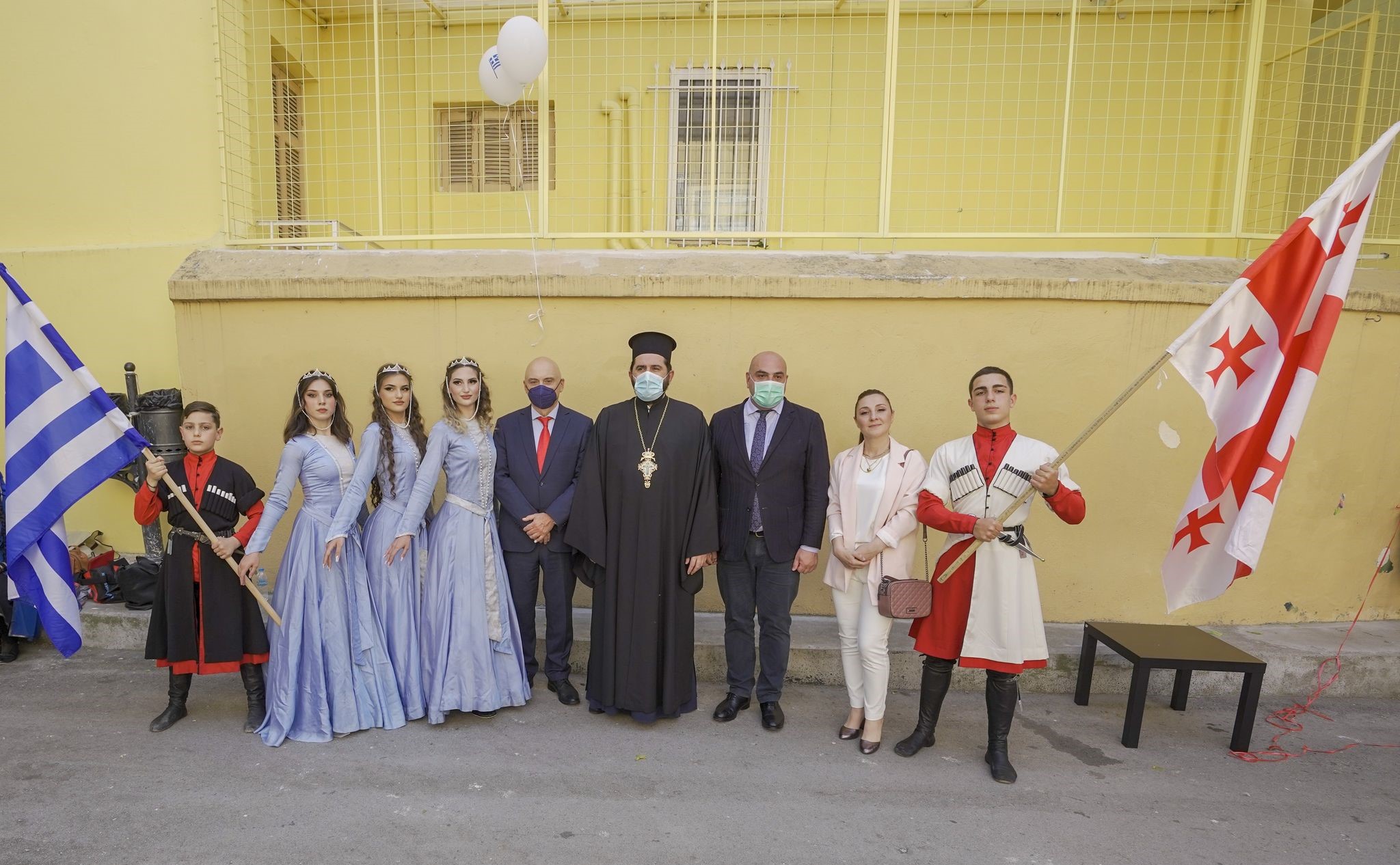 დამსწრე საზოგადოებას სიტყვით მიმართა საქართველოს გენერალურმა კონსულმა ნოდარ კომახიძემ და საუბრისას ყურადღება გაამახვილა ქართული სკოლის ფუნქციონირების მნიშვნელობაზე თესალონიკში მცხოვრები ქართველი ბავშვებისთვის მშობლიური ენის შენარჩუნების საქმეში. საქართველოს გენერალურმა კონსულმა მადლობა გადაუხადა თესალონიკის მერს და აღნიშნა, რომ მისი თანადგომითა და მხარდაჭერით გახდა შესაძლებელი ამ პროექტის განხორციელება.
