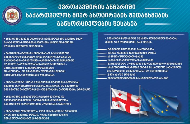 2021 წლის 9 თებერვალს ევროკომისიამ და ევროკავშირის უმაღლესმა წარმომადგენელმა საგარეო საქმეთა და უსაფრთხოების საკითხებში გამოაქვეყნეს ყოველწლიური ანგარიში საქართველოს მიერ 2020 წლის განმავლობაში ასოცირების შეთანხმების შესრულების შესახებ, რომელიც დეტალურად ასახავს ქვეყანაში განხორციელებულ რეფორმებს მთელი რიგი მიმართულებებით.