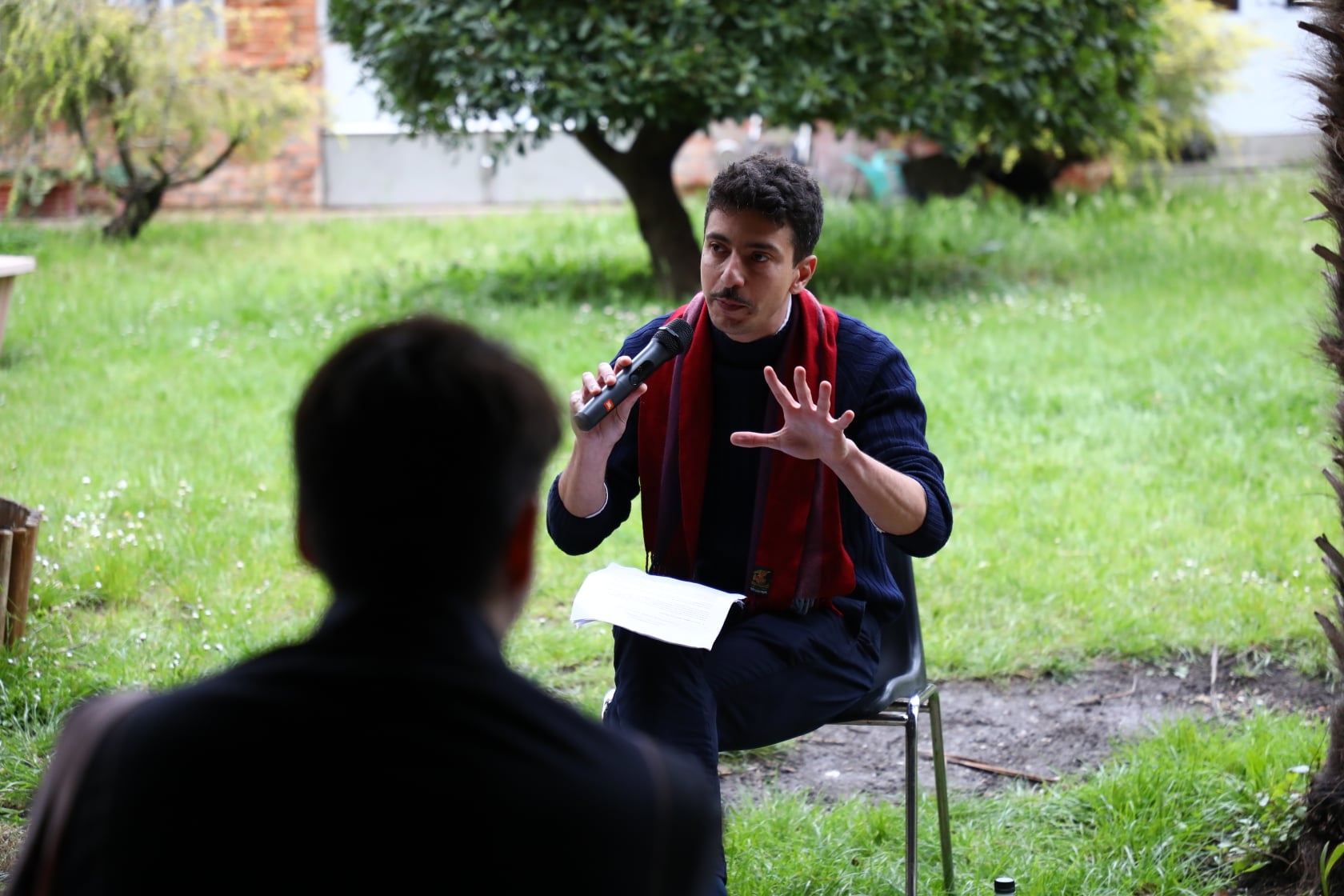 „მე ვწუხვარ ბაღზე“ თბილისში მცხოვრები და მომუშავე მხატვრების, მარიამ ნატროშვილის და დეთუ ჯინჭარაძის ნამუშევარია. ეს არის მულტიმედიური პროექტი, რომელიც მოგვითხრობს დასასრულის წინათგრძნობაზე და დიდი ზომის ვიდეო ინსტალაციის და VR (ვირტუალური რეალობის) გამოცდილების საშუალებით მნახველს ანთროპოცენის ეპოქის მაგიურ რეალიზმში იწვევს. VR გამოცდილების ცენტრალური სცენა გადაშენებული მცენარეების ბაღია, რომელიც ადამიანის ჩარევის შედეგად გამქრალ მცენარეებს აერთიანებს. აჩრდილების ბაღი, ეკოლოგიური კრიზისი, წარმოდგენილია, როგორც დასასრულის ერთ-ერთი ნიშანი. ვიდეო ნამუშევარში ვიზუალური რიგითობა წინასწარ განსაზღვრული არ არის და თვითგენერირებადია. ვიდეო-თამაშის პლატფორმაზე აწყობილი VR გამოცდილება ინტერაქციულია. “მე ვწუხვარ ბაღზე” მაყურებელს თხრობის მითო-პოეტური ფორმებით მოდელირებულ იმერსიულ გარემოში აქცევს.